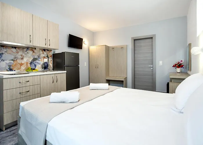 A kitchenette is provided with a refrigerator, a cooktop, and kitchenware. Serving guests with Greek dishes, Argiropoulos Patisserie is around 5 minutes' walk away.